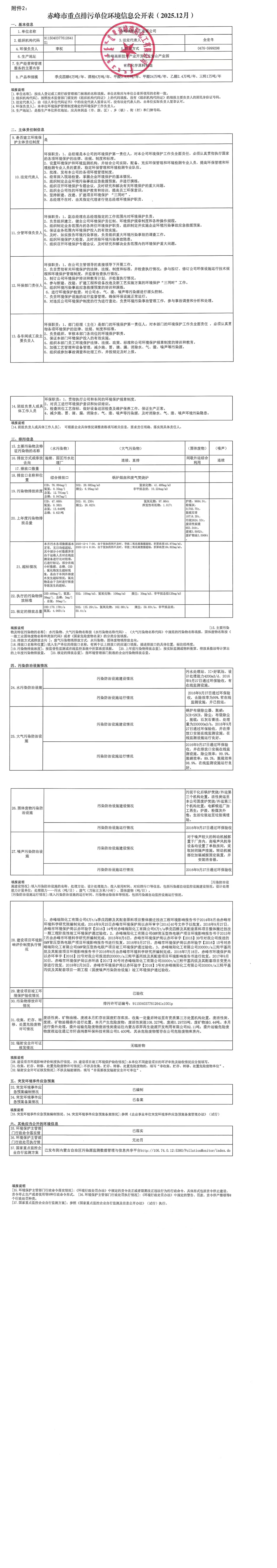 赤峰市重點(diǎn)排污單位環(huán)境信息公開(kāi)表【2025.12】